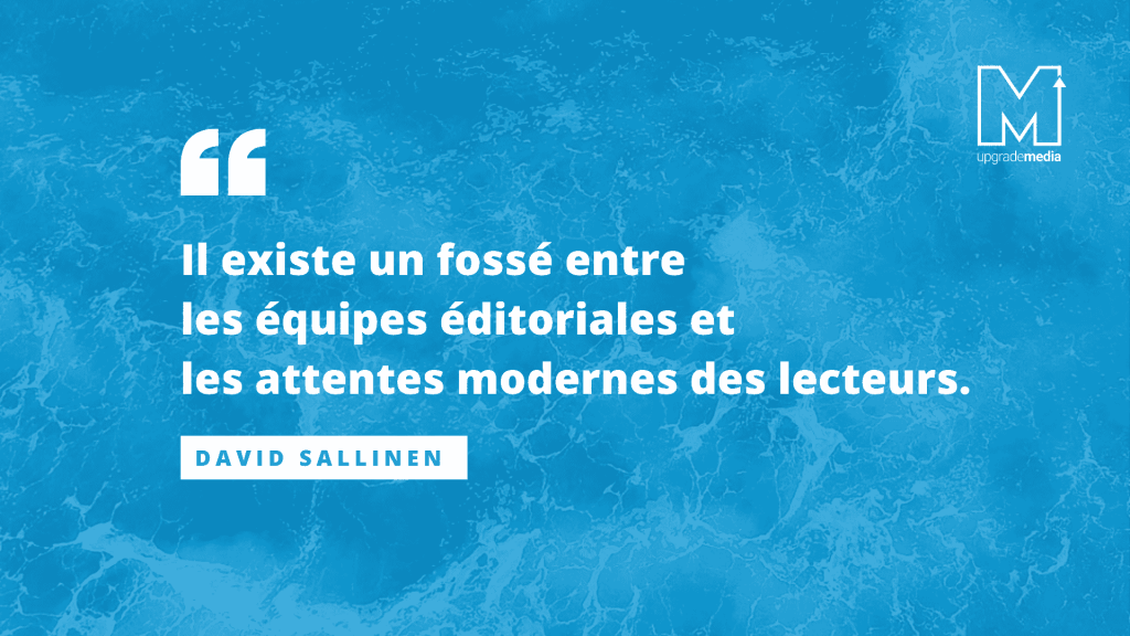 Comment renouer avec un public exigeant dont les attentes sont en constante évolution ? Dans cet entretien, David Sallinen, fondateur d’Upgrade Media, partage sa vision d’un journalisme repensé, où stratégie, empathie et innovation s’allient pour répondre aux attentes des lecteurs d’aujourd’hui, et ainsi devenir indispensable.