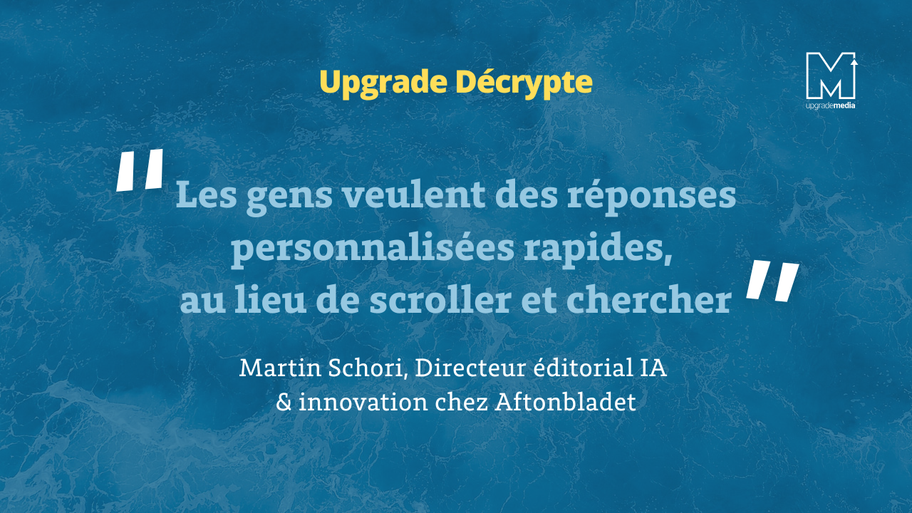 « Les gens veulent des réponses personnalisées rapides, au lieu de scroller et chercher », selon Martin Schori, directeur éditorial IA & innovation. Le chatbot répond à ce basculement : il convertit un contenu linéaire en réponse ciblée, sans sacrifier la qualité éditoriale. Ce mouvement interpelle tous les médias sur la forme même de leurs formats.