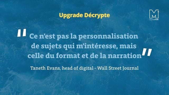 La personnalisation est souvent réduite à une sélection algorithmique de sujets. Or, les éditeurs s’attaquent à autre chose : la personnalisation du format et du récit. « Ce n’est pas la personnalisation de sujets qui m’intéresse, mais celle du format et de la narration », affirme Taneth Evans. Le WSJ, par exemple, teste des contenus selon les préférences de consommation : texte, audio ou vidéo. C’est une nouvelle grammaire, pas juste un nouveau filtre.