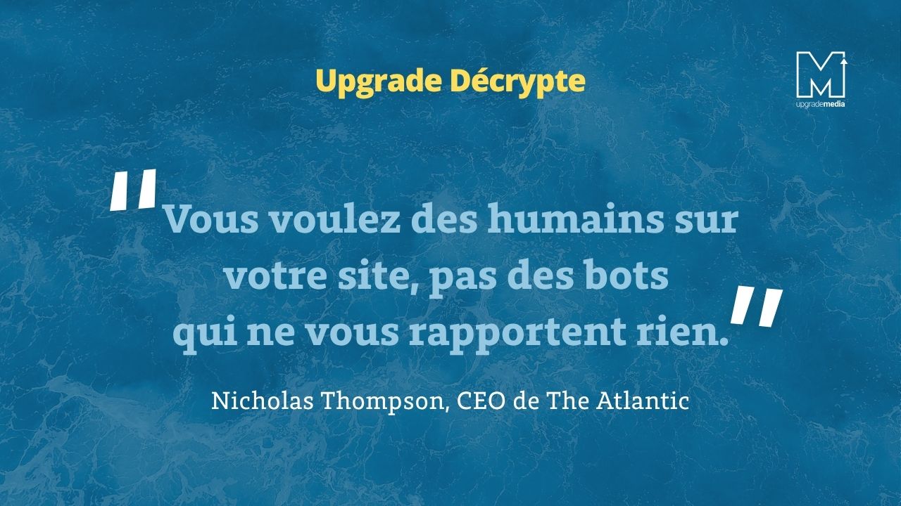 Le trafic en provenance de Google s’effondre, notamment depuis le déploiement de l’AI Mode qui réduit drastiquement le nombre de liens visibles. « Vous voulez des humains sur votre site, pas des bots qui ne vous rapportent rien », résume Nicholas Thompson, CEO de The Atlantic. Alors que les modèles d’IA s’entraînent sur le web sans compensation, les éditeurs perdent leur visibilité, leur audience, et à terme leur modèle économique.
